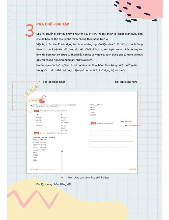 Một điểm nổi bật của Tập 2 là phần thực hành đi kèm, nơi học viên được yêu cầu đặt câu, điền từ vào chỗ trống và luyện tập ngữ cảnh giao tiếp. Các bài tập này không chỉ giúp củng cố kiến thức mà còn rèn luyện khả năng áp dụng từ vựng vào đời sống thực tế. Đối tượng khuyến nghị sử dụng sách bao gồm những người đã học qua Tập 1, học sinh, sinh viên, nhân viên công sở, hoặc bất kỳ ai muốn nâng cao khả năng sử dụng từ vựng tiếng Nhật một cách chuyên nghiệp và tự nhiên.